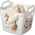 These small, flexible laundry baskets are perfect for my family. They are the perfect size for one load of laundry and are also the perfect size for my 7 and 9yo to take up and down the stairs. They are flexible, but sturdy.